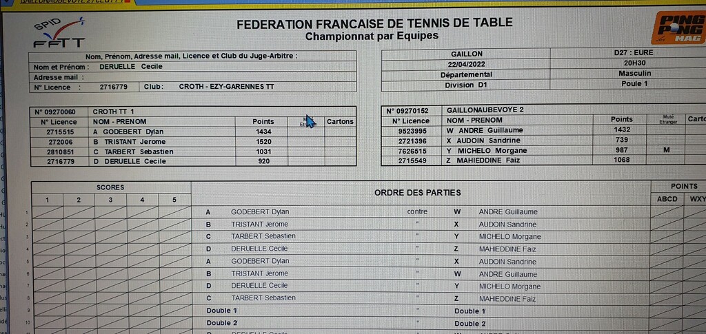 En cas de changement de la date de rencontre, ne peuvent être inscrits sur la feuille